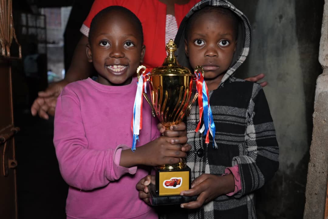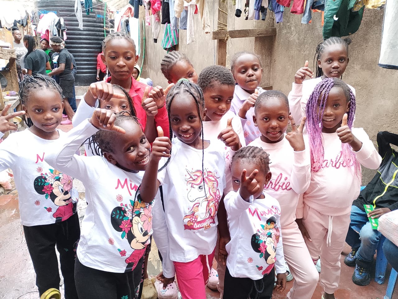 victim of child negligence at a very tender age. She was neglected due to cultural bias and had to live with her aunty. After working on construction sites in the rural area of Kenya, she moved to nairobi, where she used to help as a cook and care taker in a children´s home. In 2016 she started her own children´s rescue center in the heart of Zimmerman, the outskirts of Nairobi. In the small apartement was almost no space for the 16 children. But the family grew and moved to a 3 bedroom house. After being affected by a terrible flooding in March 2024, where the Blessed kids family lost almost all their possessions, they moved to a small compound with 4 main houses. The number of kids has grown in the meantime to 45. Rose, her assistant Damar and the Matron Knight are looking after the children´s well being.